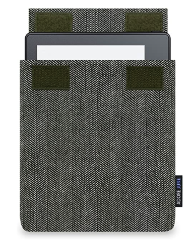 En mi caso particular, tengo un Kindle Oasis y mi funda favorita es la Adore June Business, una funda que en su exterior tiene una textura parecida al tweed (tela fina tejido en espiga) mientras que en el interior está forrado con una suave tela polar. Para el cierre tiene unos velcros que funcionan a la perfección. Esta es la misma funda que tenía en mi viejo Kindle Voyage (está disponible también para este tamaño de Kindle). También las podéis encontrar, por el mismo precio, en color negro de tela cordura. Os recomiendo también echar un vistazo en la tienda de Adore June, un fabricante de bolsos y fundas basada en Hamburgo que tiene un estilo y factura de sus productos muy durable y con una relación calidad-precio excelente.