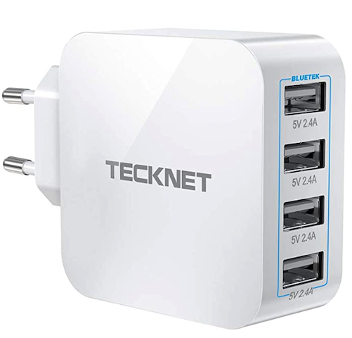 Por supuesto, también podemos usar cualquier otro adaptador que tengamos (el de nuestro móvil, por ejemplo) para cargar nuestro Kindle. En mi caso utilizo un cargador de puertos USB muy similar a este Tecknet que –por el mismo precio– me permite enchufar más dispositivos en mi mesa de luz. Eso sí, para llevarlo de viaje resulta un poco más pesado y ocupa más espacio.