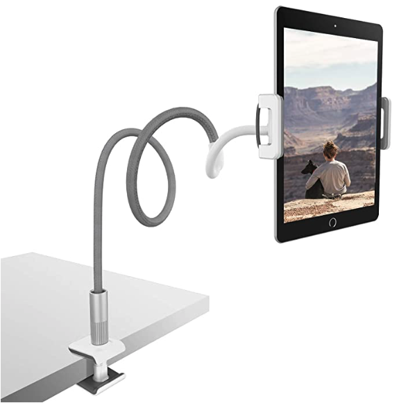 Estos brazos no están exclusivamente diseñados para los lectores de libros electrónicos, sino que comparten también su función con tabletas, consolas portátiles o teléfonos móviles. Lo importante es que el tamaño de apertura de las agarraderas permita alojar a nuestro Kindle de forma sólida y segura. Este es el caso del soporte cuello de cisne Lamicall, que cuenta con un brazo flexible de aleación de magnesio y aluminio de unos 70 centímetros de largo. Este tipo de accesorios puede resultar muy útil a personas que sufran tensiones por malas posturas en su cuello, ya que pueden contar con el mejor ángulo y distancia de visión sin ocasionar malestar ni fatiga.