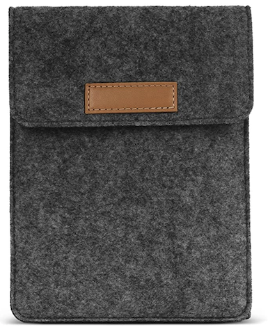 Con un formato parecido podemos encontrar la MoKo Kindle Cover, que en este caso tiene una cobertura de fieltro, lo suficientemente gruesa para proteger nuestro Kindle. Tal como en la June Business, el cierre es de velcro y el interior está recubierto de un tejido más suave. ¿El plus? Un bolsillo extra para poder guardar y transportar nuestro teléfono móvil.