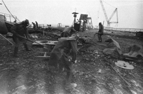 Mientras las autoridades soviéticas sabían de la gravedad de la exposición a la radioactividad, seguían mintiéndoles y ocultándoles información a sus ciudadanos, enviándolos a limpiar y arreglar el desastre sin más herramientas que una pala, unos cobertores plásticos y el llamado al heroísmo. Siempre el heroísmo.