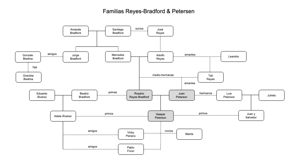 Mapa y descripción de personajes de la novela "Nuestra parte de noche", por Mariana Enríquez